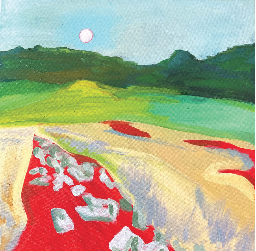 I draw inspiration from nature, light and shadows, people, and my southern heritage. Vivid colors, blocky shapes and a sense of movement or urgency often mark my work. Whether through the neon orange of a landscape or dramatic pose of a hand, I gravitate toward creating pieces that grab your attention. As I paint, I hope to create colorful spaces to delight in or familiar places that spring up lost memories.